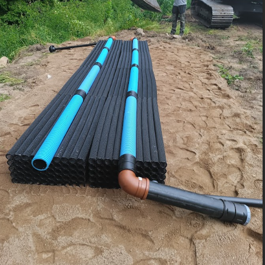På bilden syns biomoduler som har installerats tillsammans med en trekammarbrun till er enskilt avslopp. Biomoduerna ökar livslängden på avloppen.